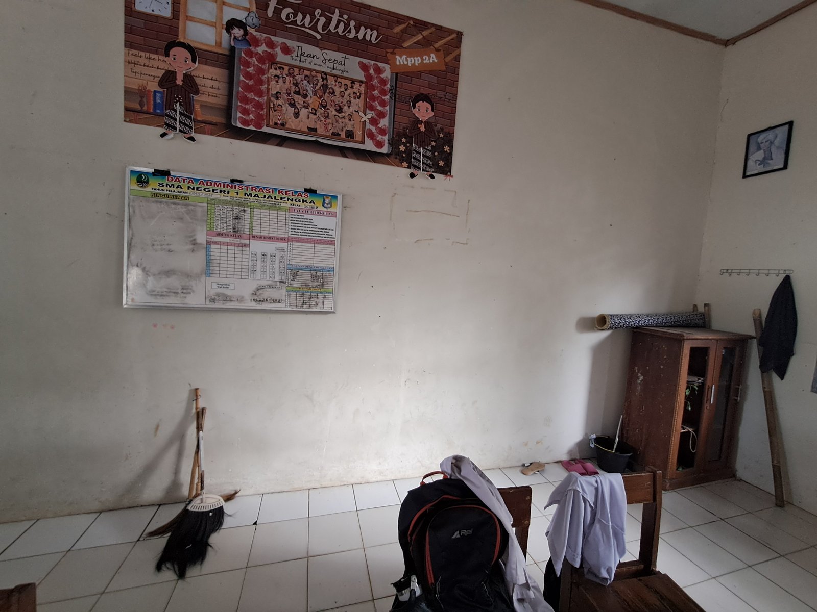cukup bersih namun tata letak alat kebersihan berantakan