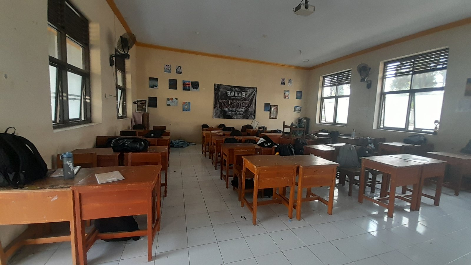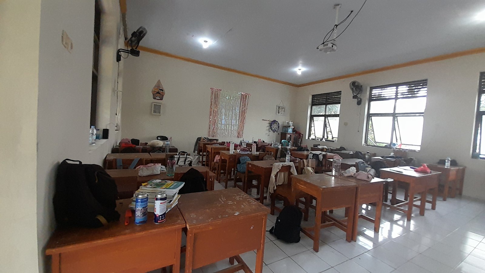 Kelengkapan kelas tidak ada , ada bekas tanah juga tidak disapu