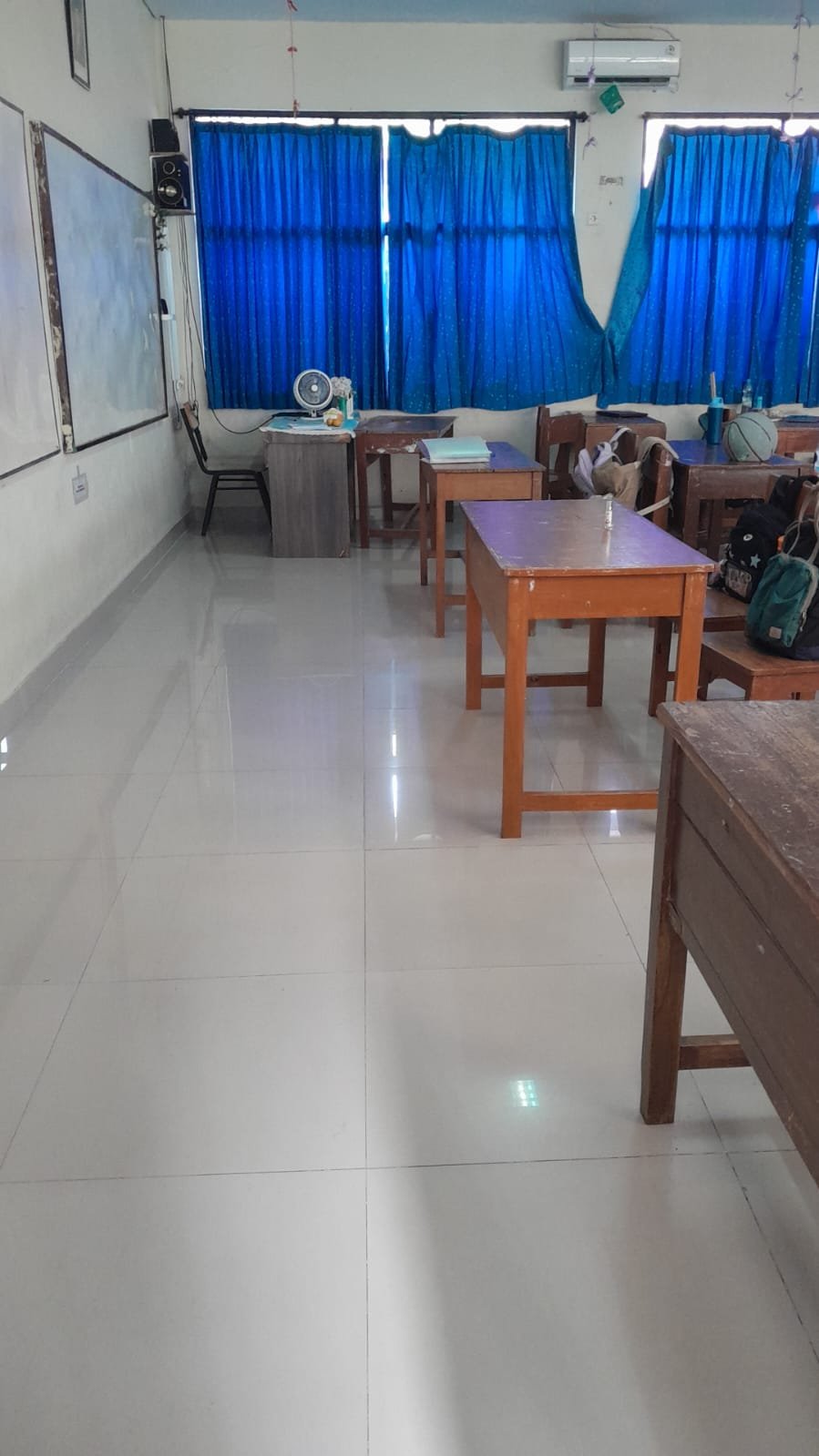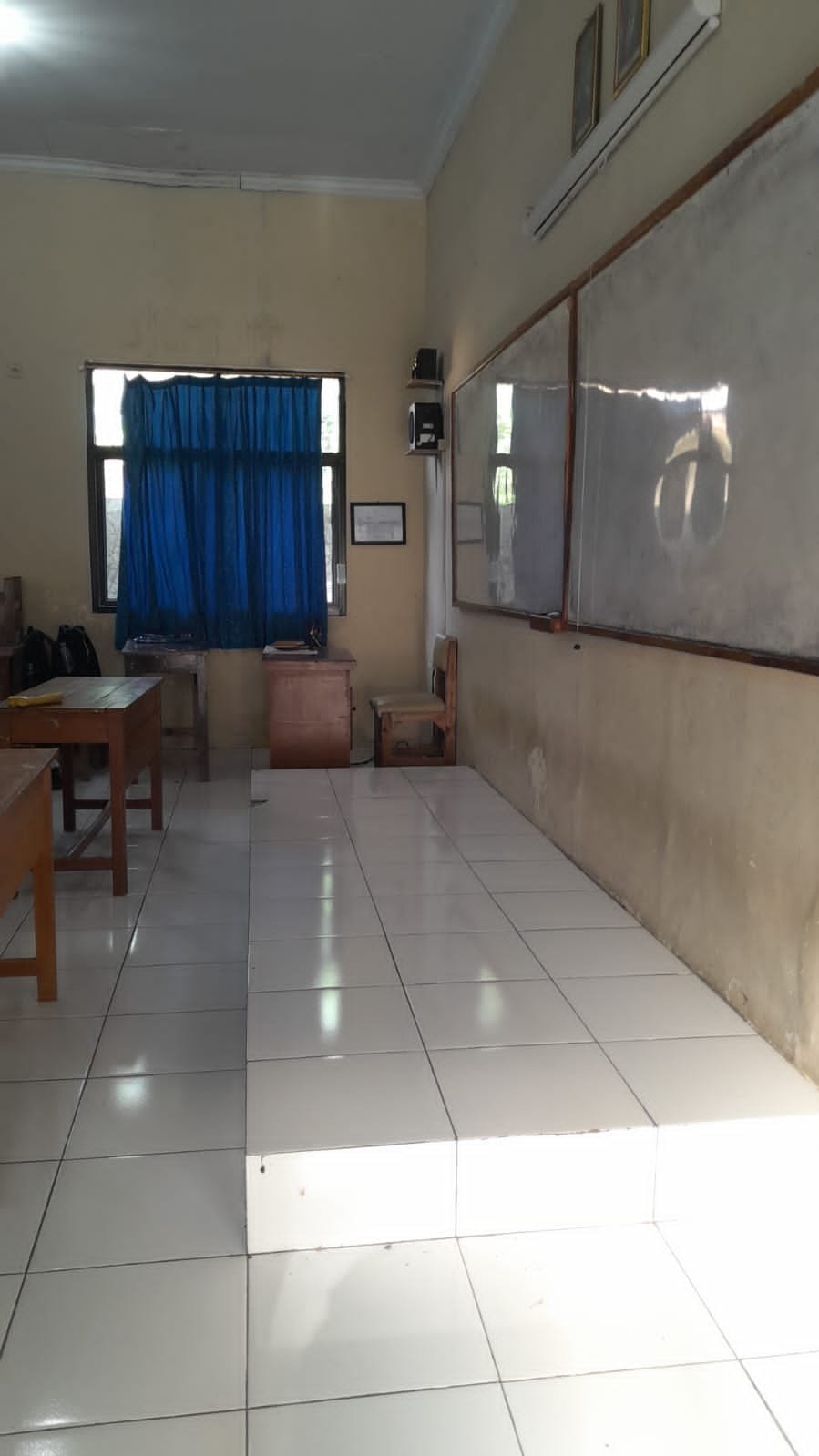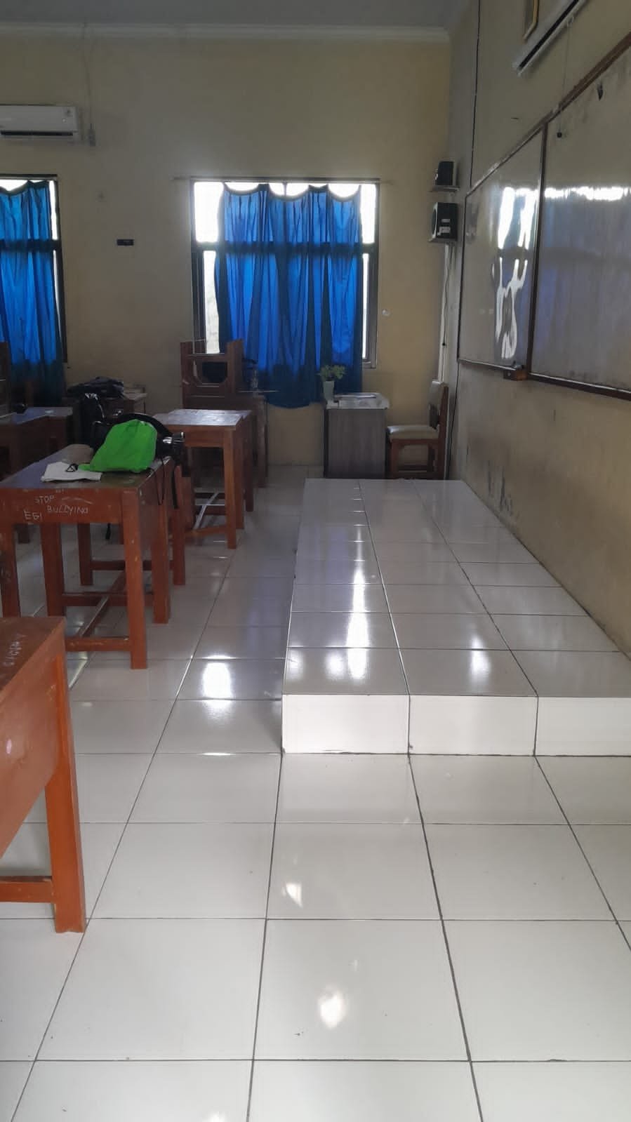 2 pelanggaran, tidak ada taplak, kadang ada sampah didepan meja guru