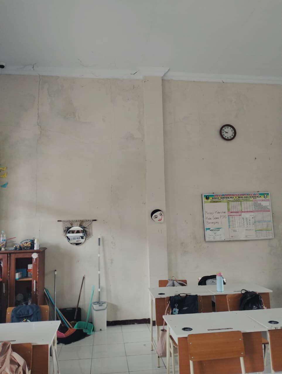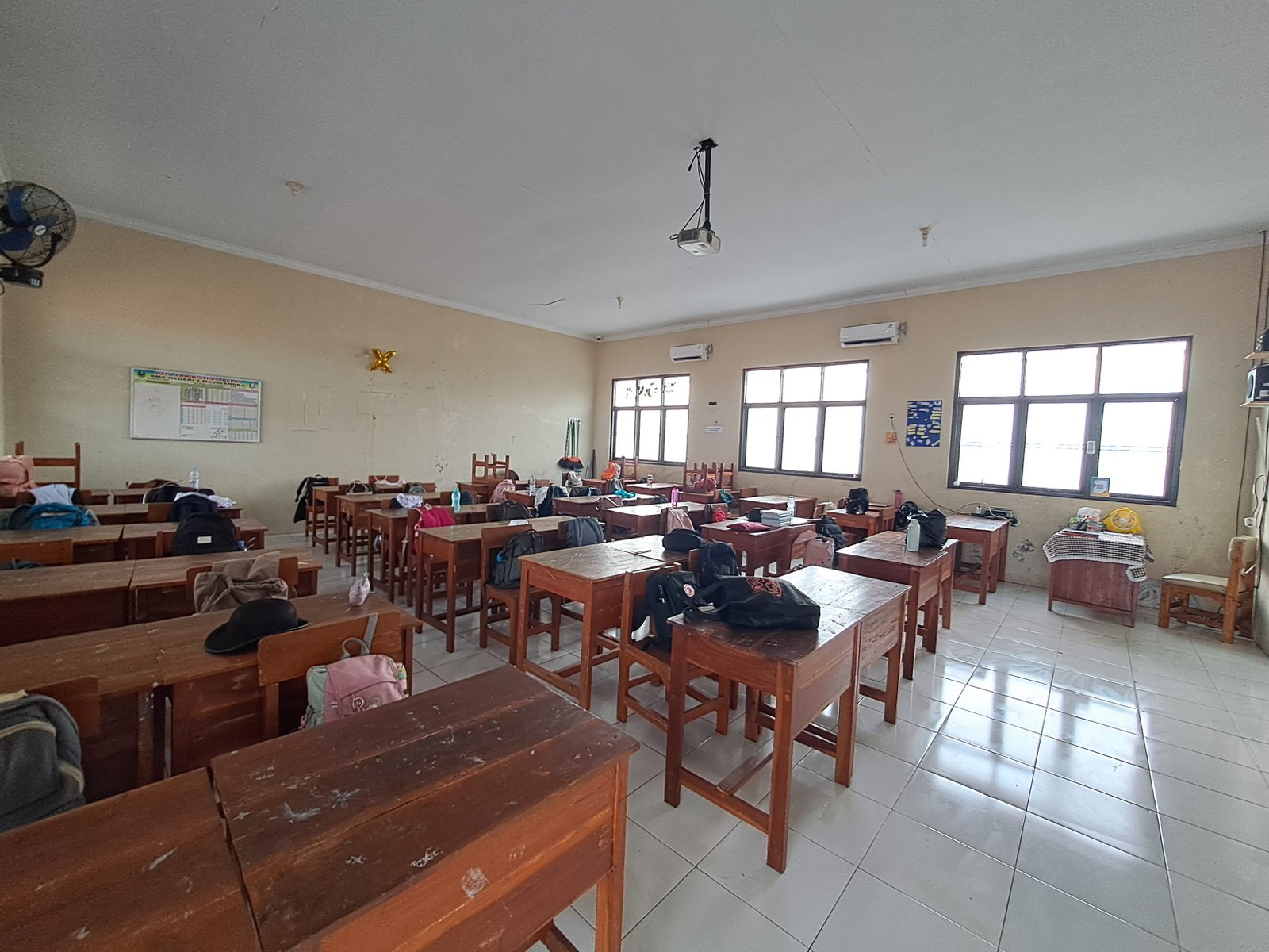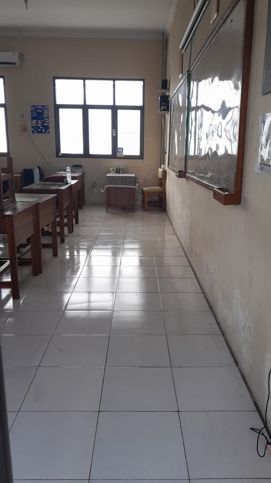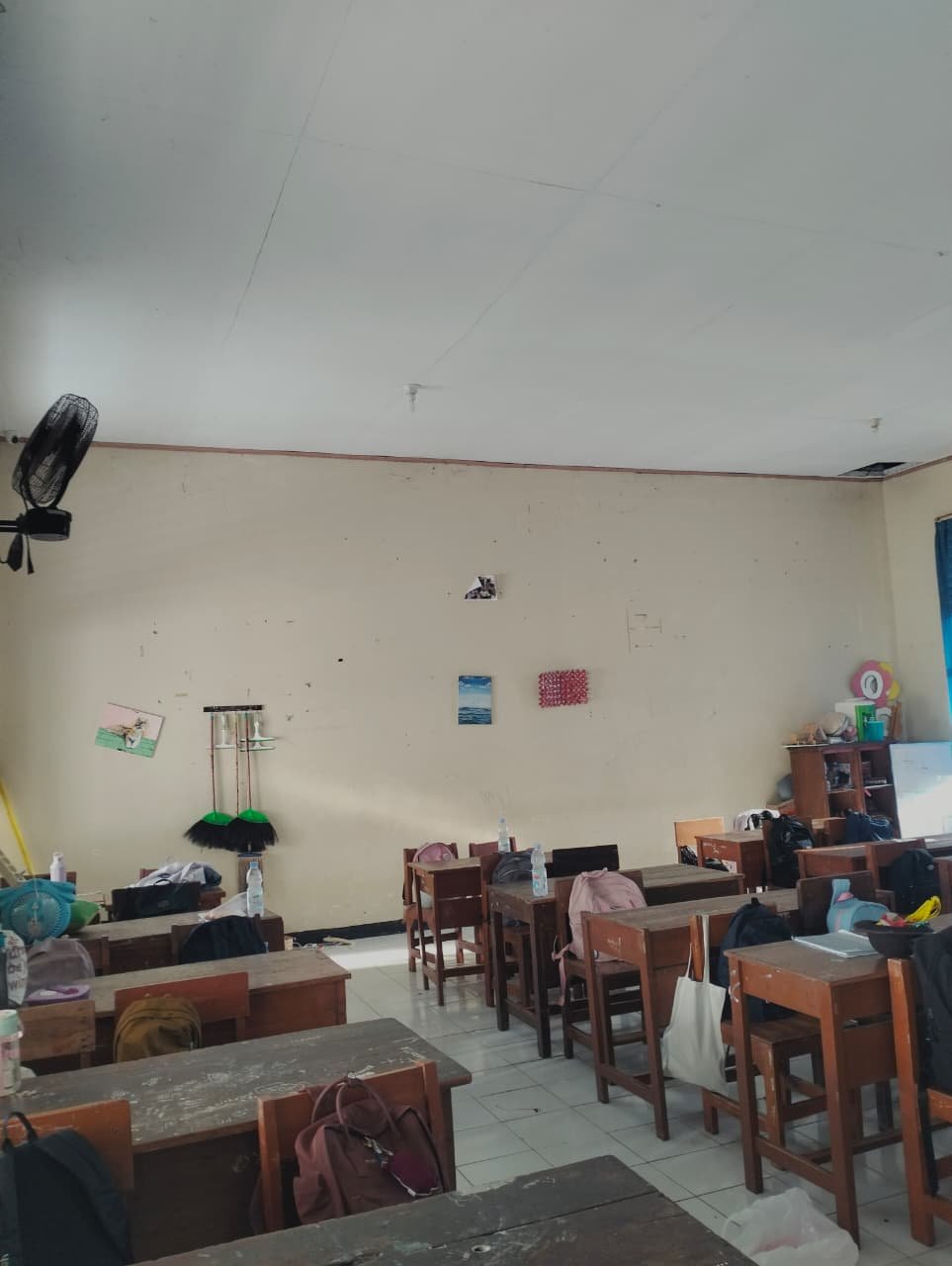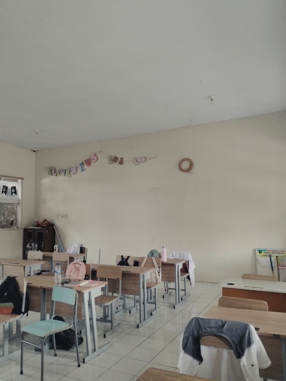 lantai bersih,dekorasi sederhana ada siswa yg kesiangan