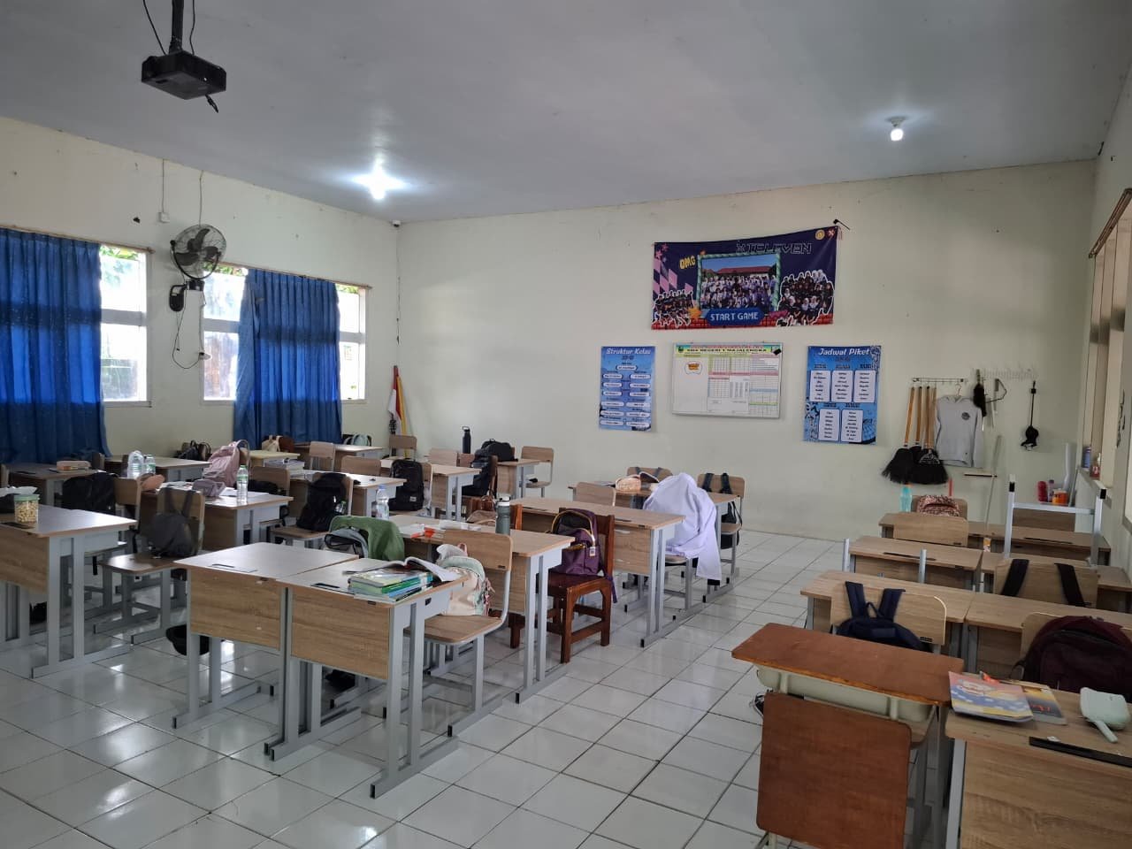 Kelas lumayan bersih, sudah tidak ada sampah botol lagi di belakang kelas, tetapi kelengkapan kelasnya masih kurang